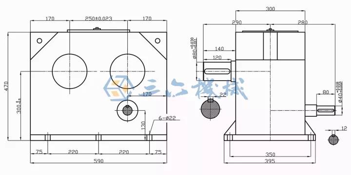 這是一款適用于對輥碾壓機的雙輸出軸減速機:YZSY250-11kw-48-M1-S型。如下圖: