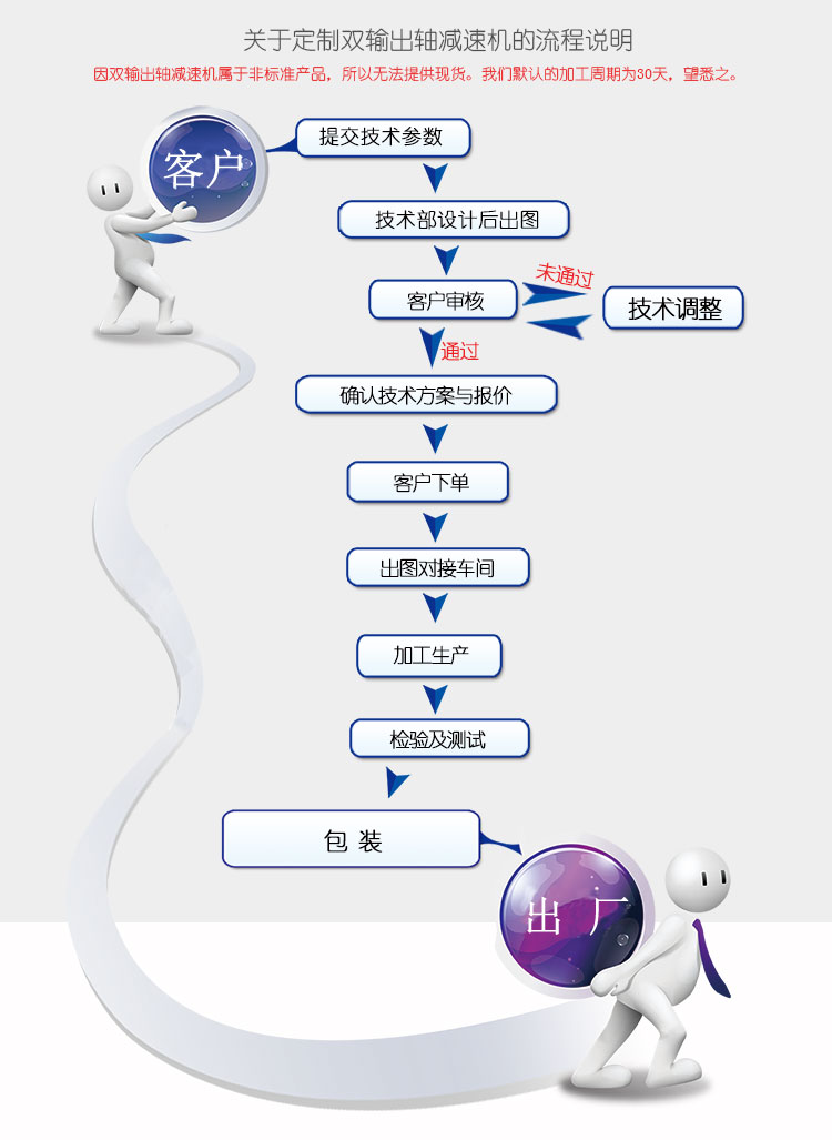 雙輸出軸減速機僅僅是非標準減速機中較有代表性的產(chǎn)品之一,在十多年的產(chǎn)品定制過(guò)程中,我們接觸了太多的非標減速機案例,比如6軸、8軸、甚至還有14軸的多軸減速機。其實(shí),我們關(guān)心的不是您的設備需要幾根輸出軸,我們關(guān)心的是,您的技術(shù)參數是否準確并完整。只要技術(shù)參數到位了,正常情況下,我們都可以給出佳的技術(shù)方案。